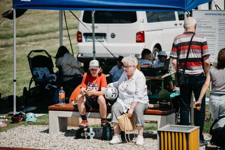 Jelikož skateparku se nachází kousek od pěkného kempu, většina jezdců dorazila již v pátek, aby zde mohla potrénovat. Atmosféra super a zároveň večer posezení u ohně.
